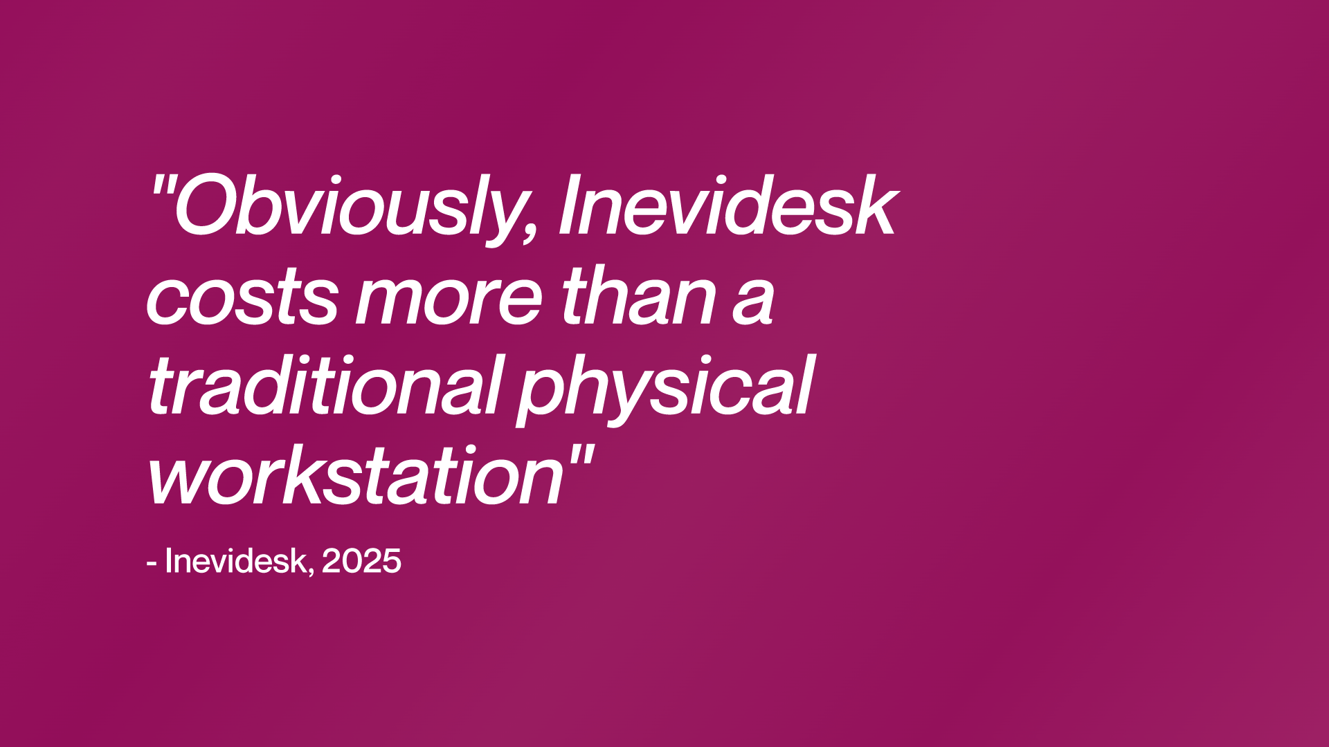 While our competitor says "Obviously, Inevidesk costs more than a traditional physical workstation," Computle has done the opposite. We worked out how to deliver our service at the same TCO as a workstation in an office, and we are proud to have achieved that. Read more about how we deliver workstations at scale without the cost overhead.