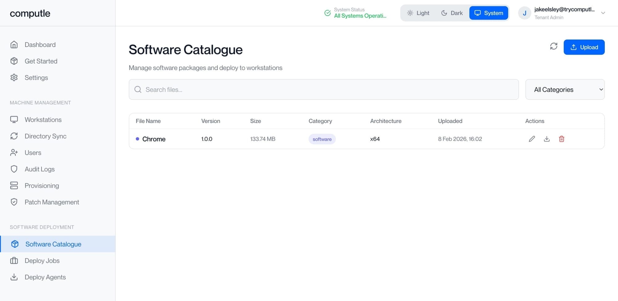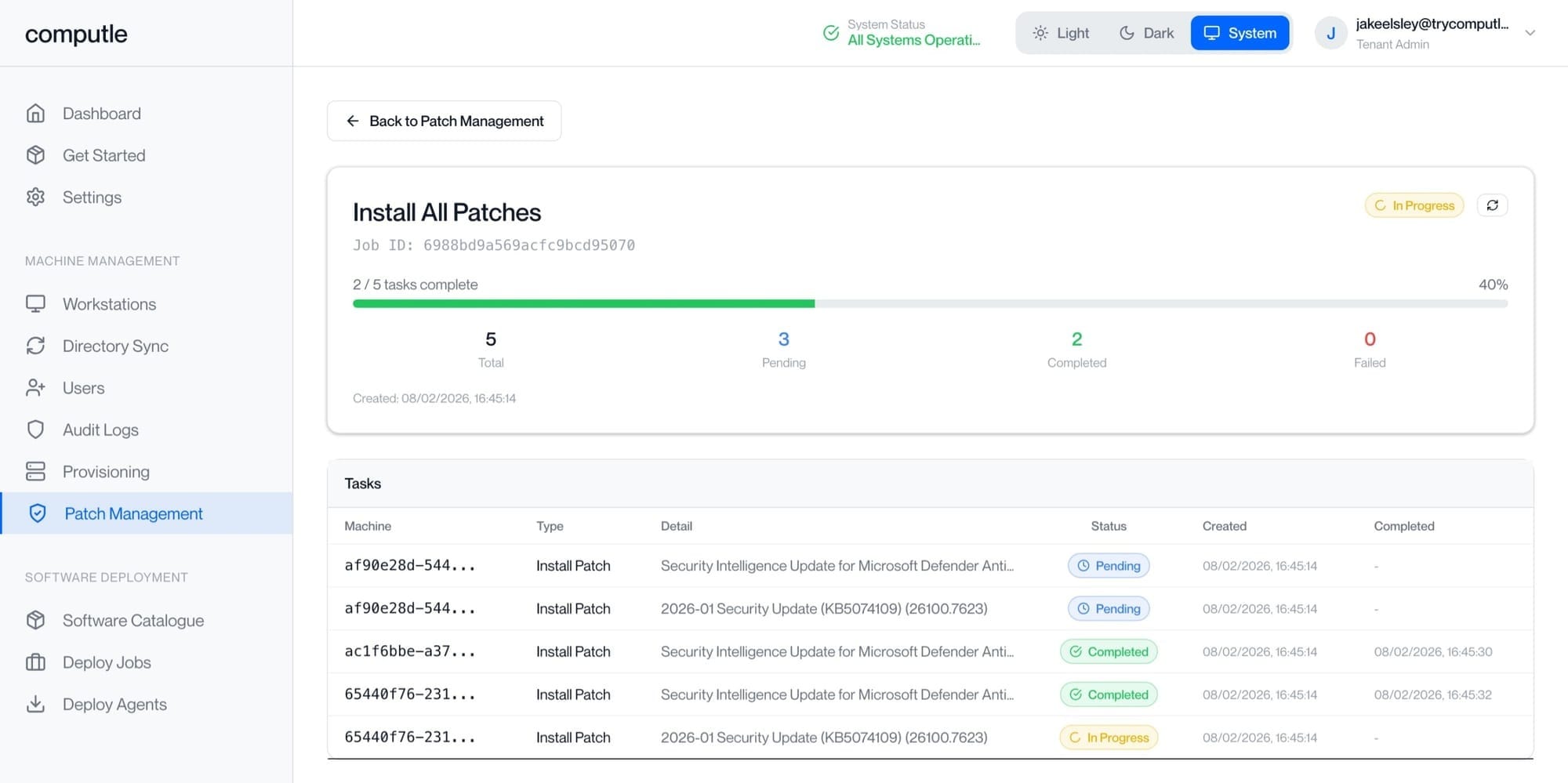 Computle exists to make the provisioning of workstations easier. We removed the burden of hardware management — but hardware is only half the story. The other half is everything that happens after the machine powers on. The setup, the software, the updates. For most organisations, that's still a manual, time-consuming process spread across multiple expensive tools. To change this, we are releasing three new complimentary features: Patch management, software deployment, and machine provisioning.