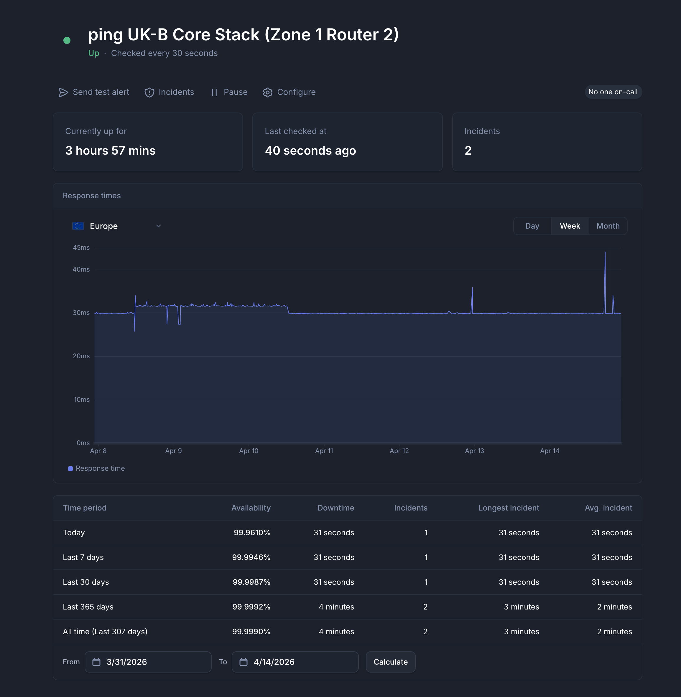 UKB Core Stack Zone 1 Router 2: Downtime of 31 seconds.