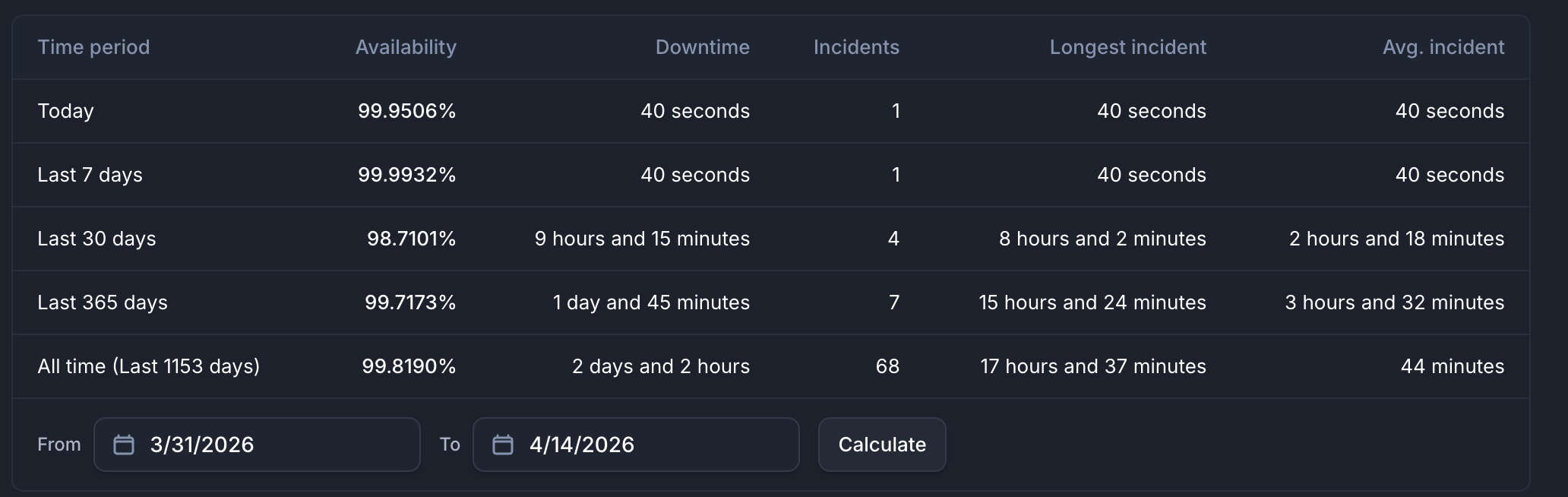 Our external uptime monitoring platform tracks all UK-B hosted gateways and services. The following table summarises the impact: