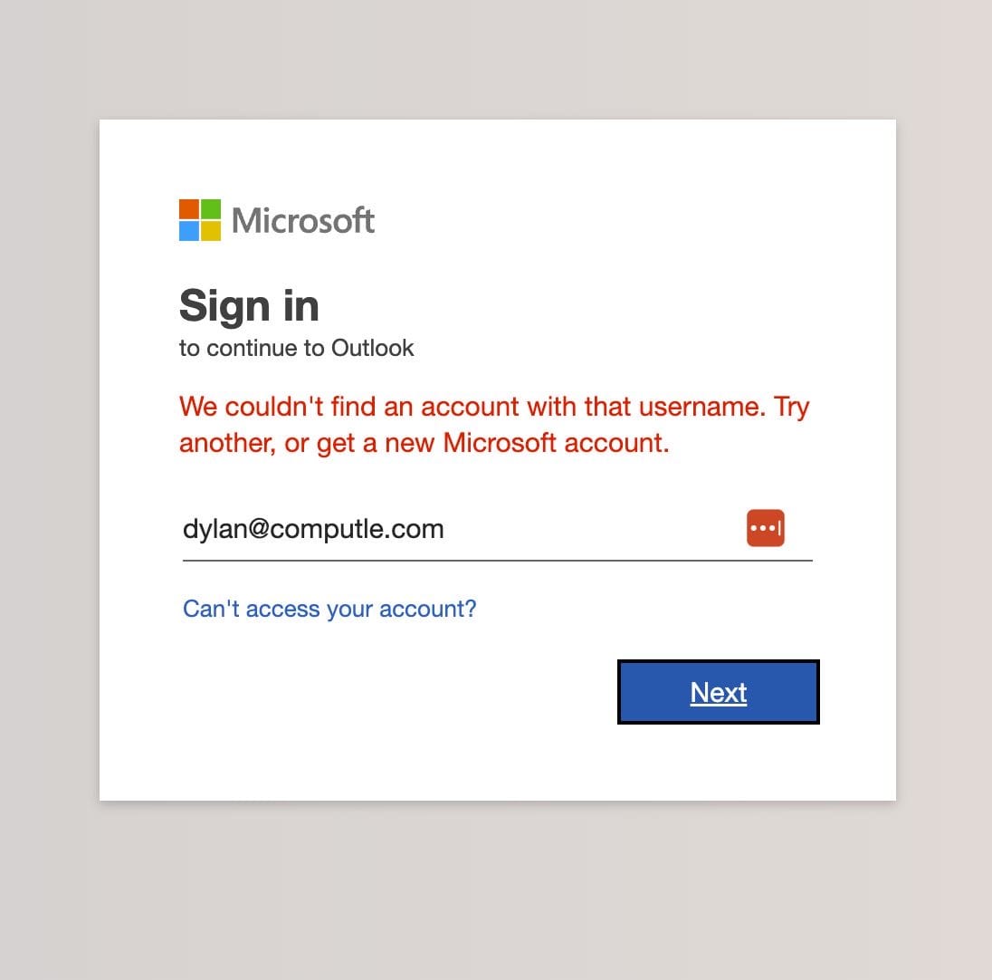 This is where it gets really interesting. I won't speculate on how they do this, but not only does it capture the login wallpaper from our tenant, but it also provides user validation, showing an error message if the account does not exist in our tenant.